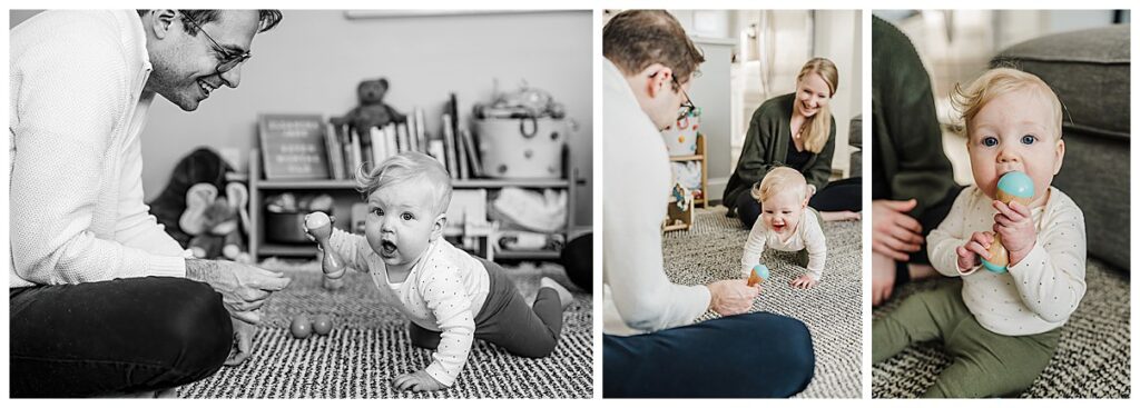 The growth between 2 weeks and 6-9 months is truly mind-blowing. Your helpless infant goes from a tiny screaming (or sleeping) bundle to a chubby, laughing, sitting REAL human. 6-9 months of age is probably my all-time favorite to photograph because they are so full of joy and laughter (and thigh rolls). This session can take place outdoors at sunset or in your home, depending on season and family wants. Traditionally called a “sitter” session, these take place between 6-9 months of age. If you want your baby to be stably sitting, closer to 8-9 months is a good spot. But if 8-9 months falls in January and February and you’re set on an outside session we will do 6 months!