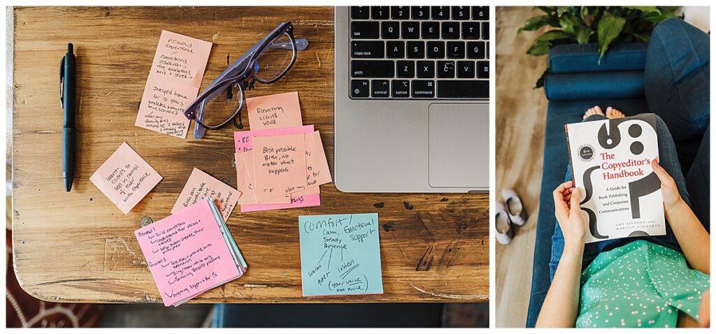 If you’re a coach, I might capture you mapping out a strategy session or chatting with a client. If you’re a artist/maker, I’ll photograph your hands working, materials spread out around you, or the magic happening mid-process. If you’re a service-based entrepreneur, this could look like prepping client materials, consulting, or doing whatever sparks that “ah-ha” moment for your people.